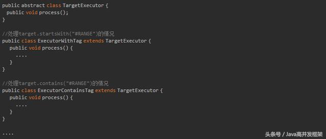从上的代码看的出来,不同的条件下,执行的逻辑是不同的,那么可以把这种执行逻辑抽象出来,用多态的概念来定义不同的执行方式。