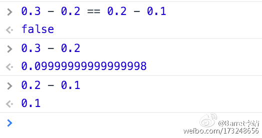 JS 采用 IEEE-754 浮点数表示法,这是一种二进制表示法,由于精度原因 JS 不能表示所有的实数。它能展示的浮点数个数是有限的,比如它不能准确地表示三分之一的数值字面量。这也导致了它在浮点数的计算上存在误差,如 0.3-0.2 != 0.2-0.1,因为在计算的过程中,存在数据的溢出,丢失了精度。