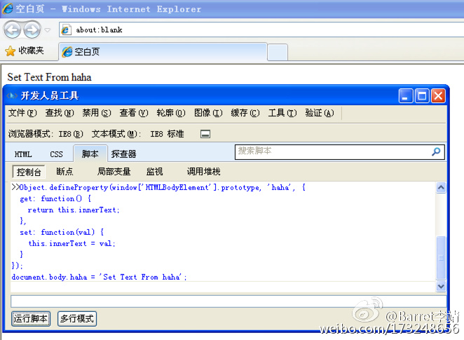 Object.defineProperty 虽然是 ES5 的东西,早在 IE8 就已经支持了,但支持得并不完善,比如 writable、enumerable、configurable 这些配置项设置就无效,IE8 下主要支持 getter/setter。