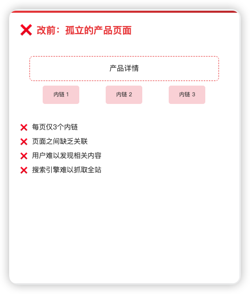 内链贫乏: 相关产品与内容之间缺乏有效的连接。