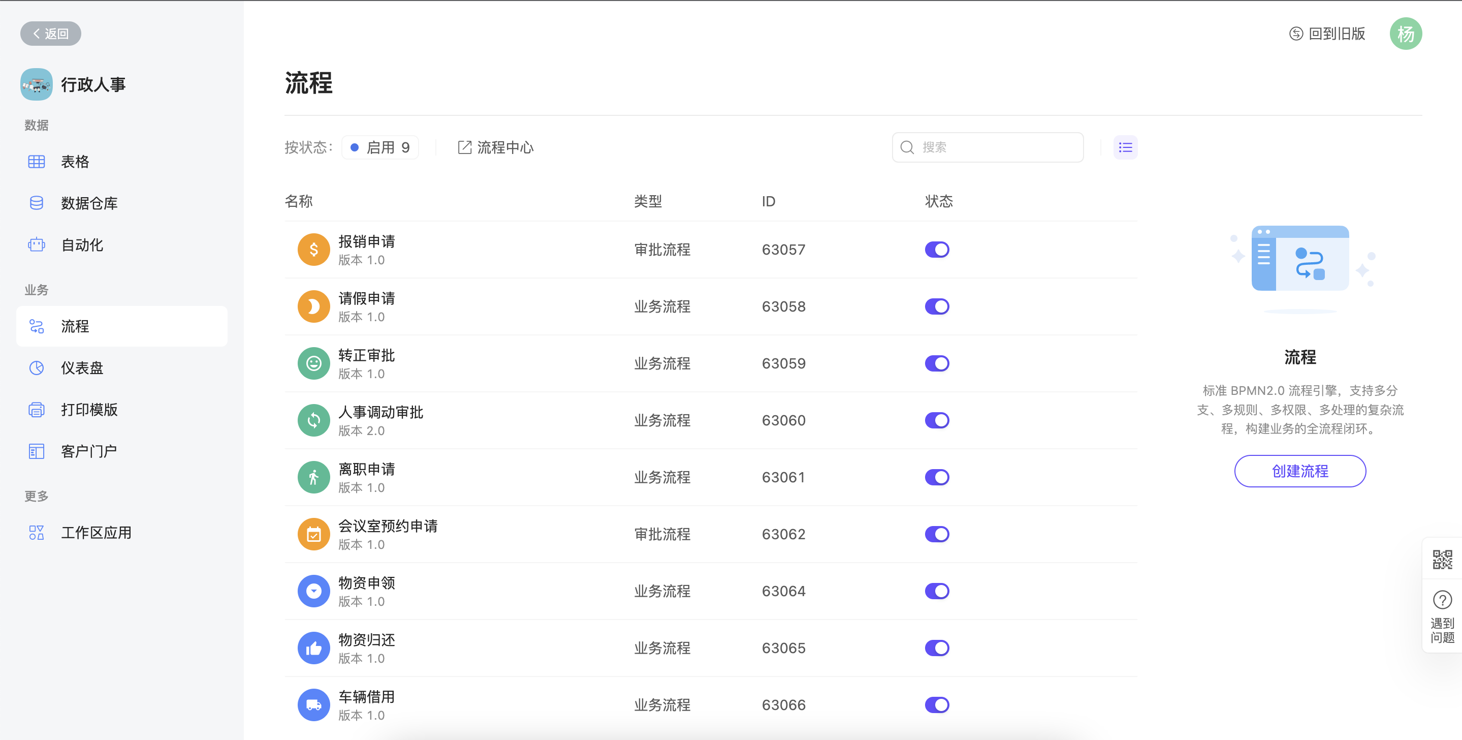 - 流程审批自动化:报销、用印等行政任务提交后,系统根据预设规则自动流转至直属领导→财务→行政,支持多级条件审批
