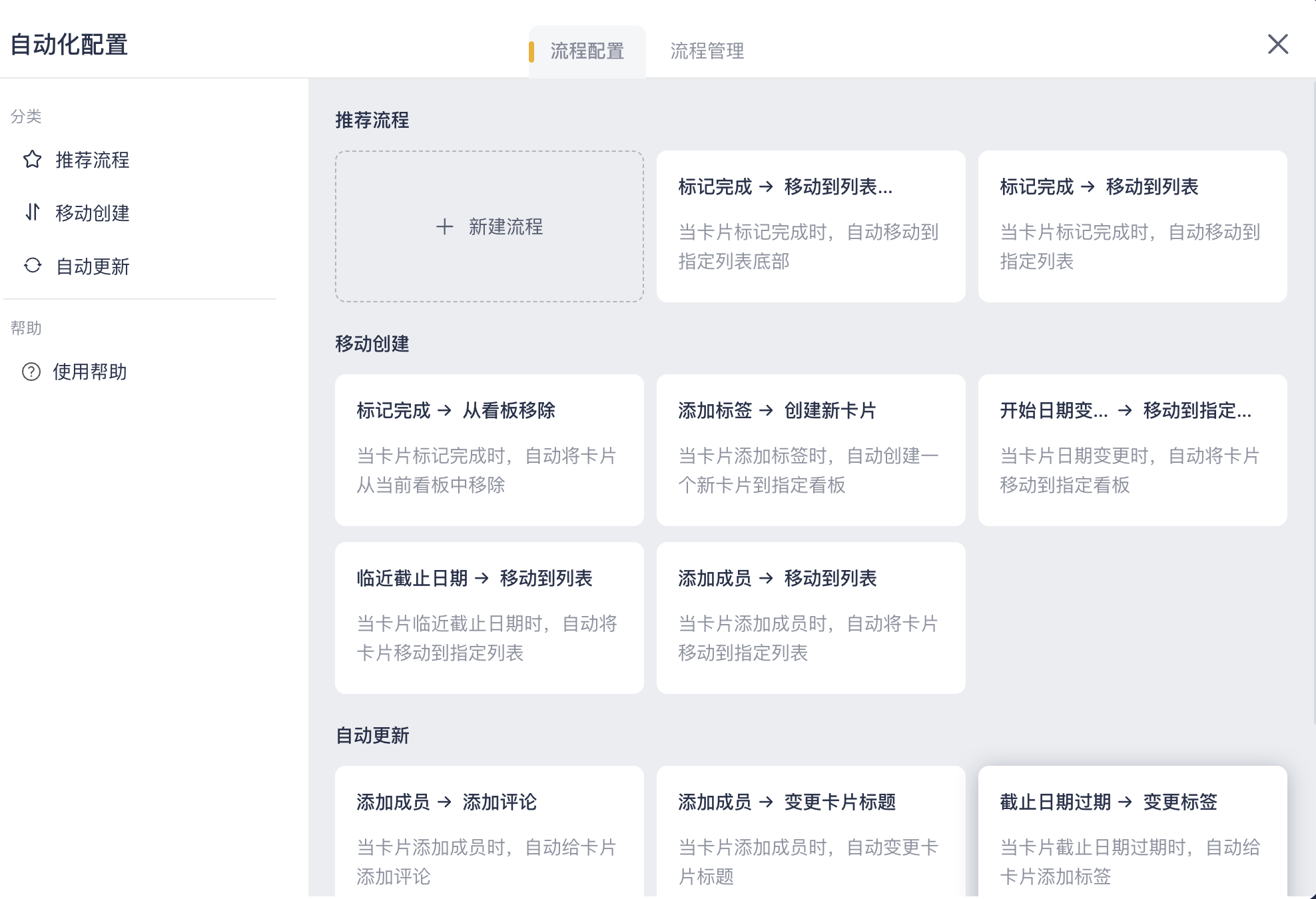 - 状态变更联动:任务在看板泳道间拖拽时,自动触发后续任务创建,形成流程闭环