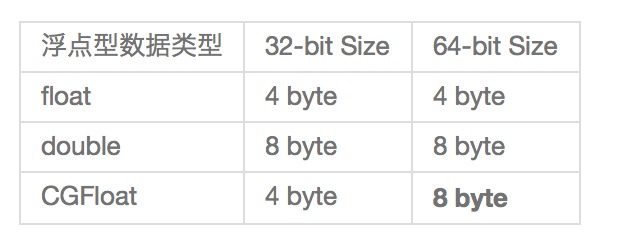 typedef CGFLOAT_TYPE CGFloat;#if defined(__LP64__) && __LP64__# define CGFLOAT_TYPE double#else# define CGFLOAT_TYPE float#endif