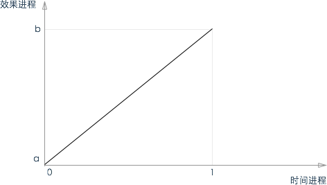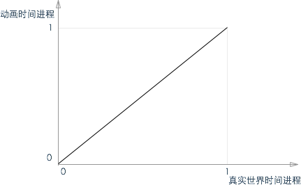 这是线性动画中,真实世界的时间进程和动画进程的映射关系。接下来,我们将其进行变换