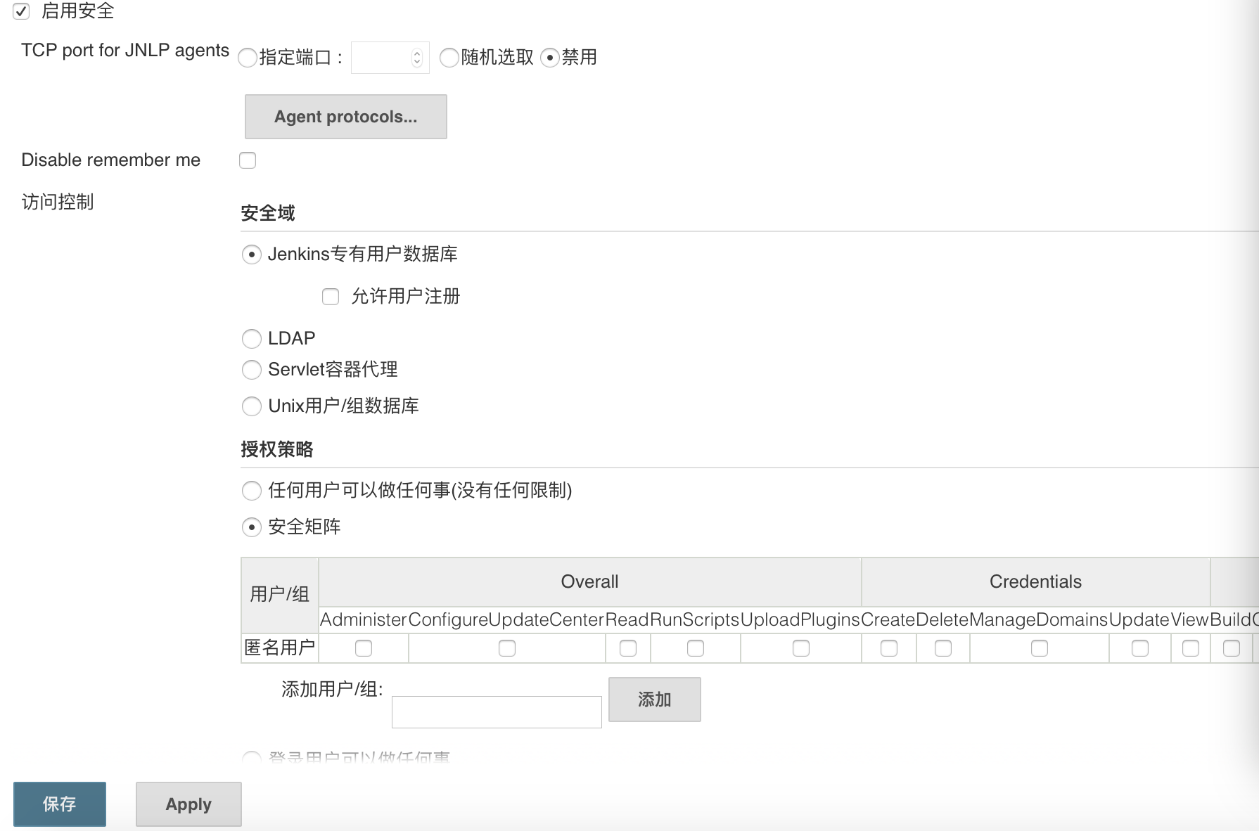 Jenkins安装之后可以进行用户的权限设置、插件的安装等配置。