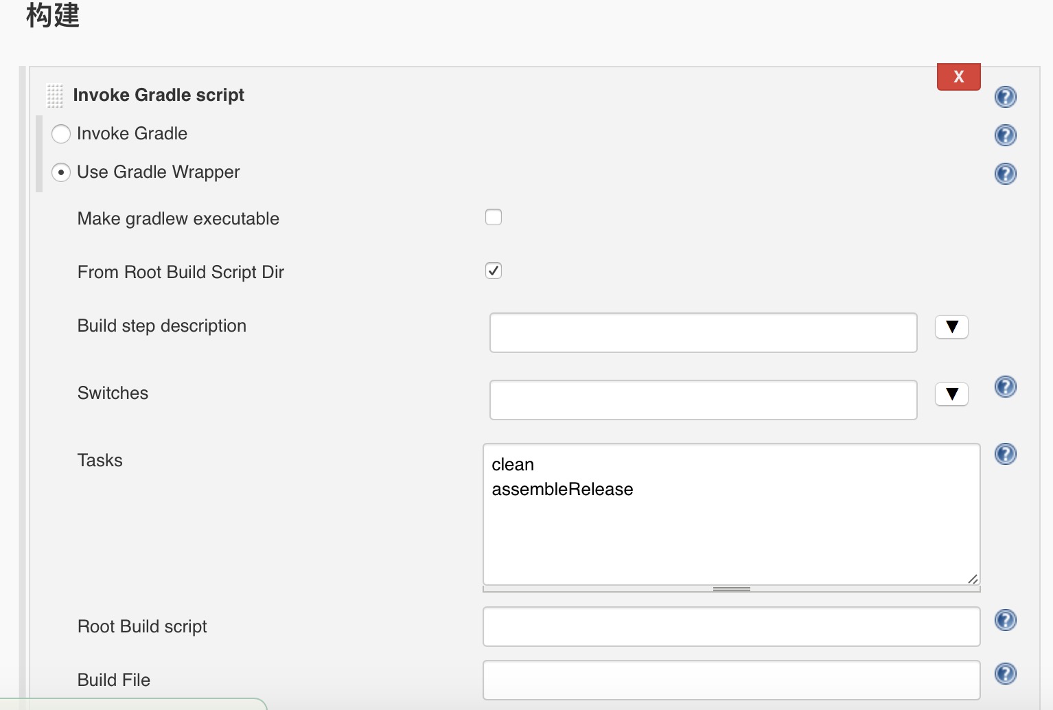 因为现在Android项目默认都是使用Gradle来进行构建的,所以在构建中我选择的是Invoke Gradle script。当然你也可以选择其它的构建工具,比如Ant。