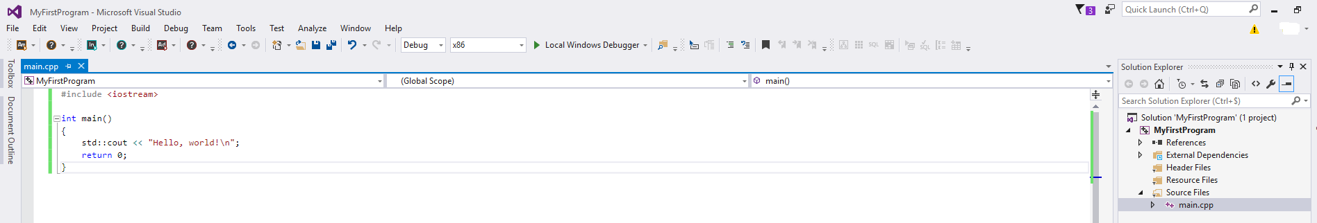 下面是一个保存在文件 helloworld.cpp 中一个简单的 C++ 程序的代码: