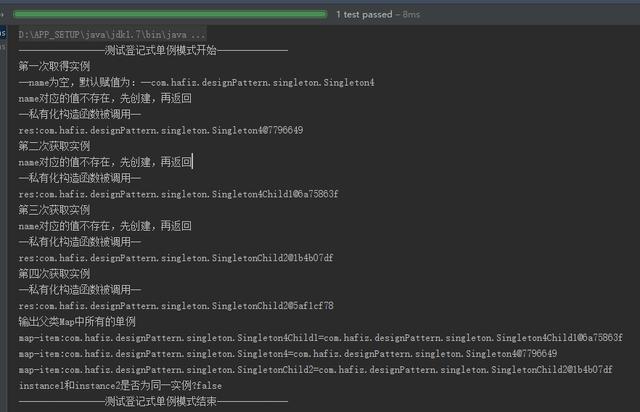 System.out.println("-----------------测试饿汉式单例模式结束--------------");