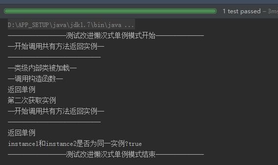 System.out.println("-----------------测试改进懒汉式单例模式开始--------------");
