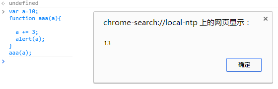 1 var a=10; 2 function aaa(){ 3 alert(a);//undefined,查找a的时候会现在函数内查找,由于预解析的作用,此时的a是undefined,因此永远不会去查找外面的10了