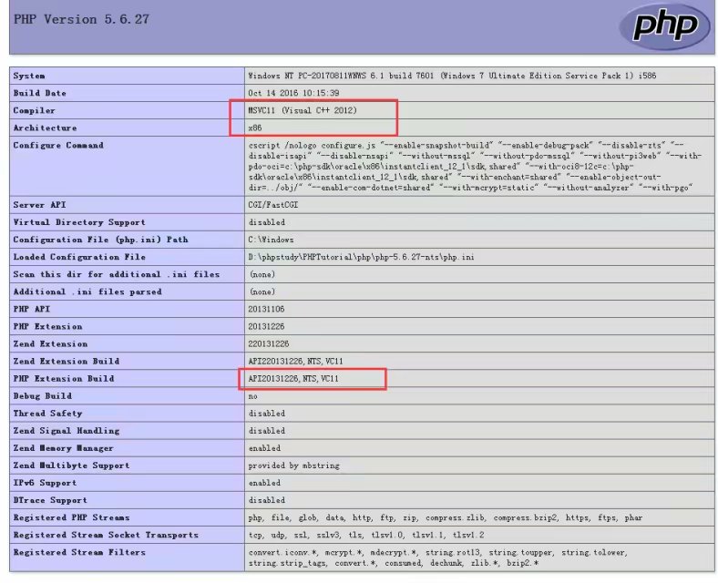 1.首先打开phpinfo();查看版本,为了安装扩展时找对应的扩展文件;