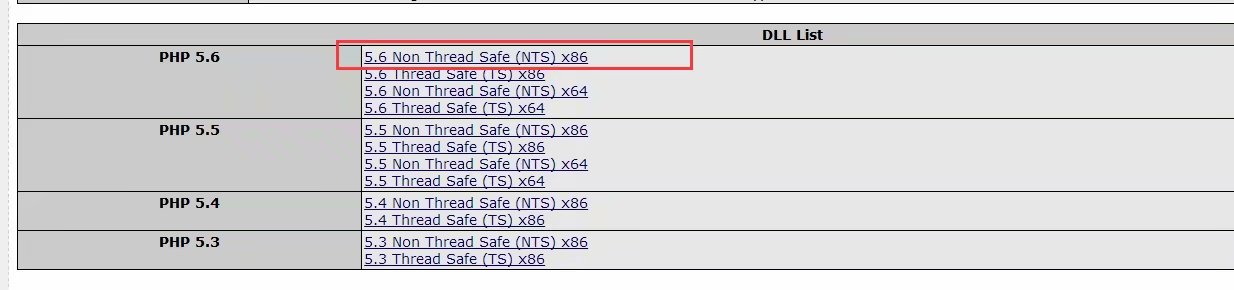 这里是PHP版本是5.6,NTS,VC11,x86,所以我找的扩展文件是这个条件;