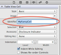 想要使用reuseIdentifiers的话,在一个table view中添加一个新的cell时在data source object中添加这个方法: