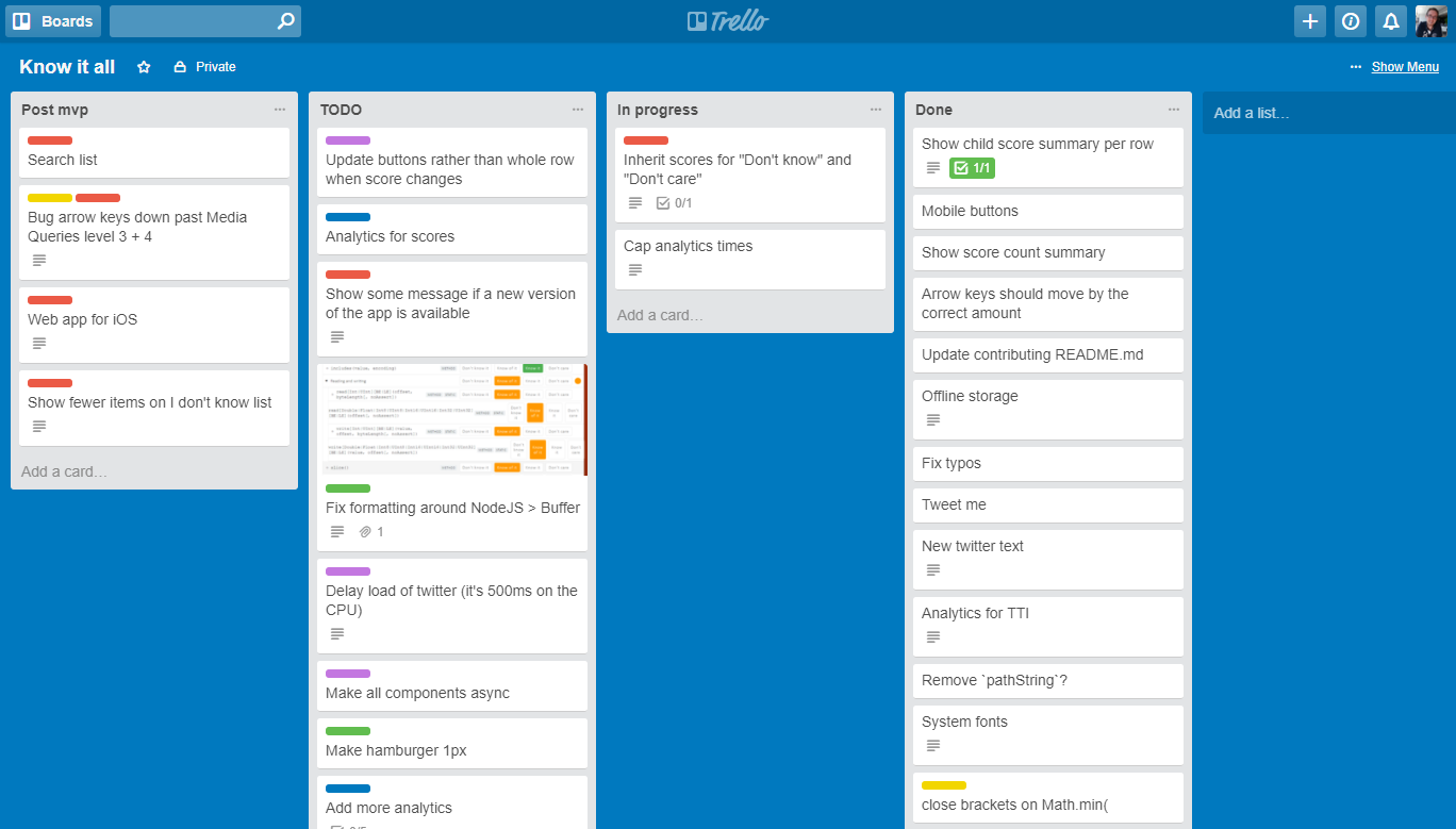 我常常在大项目中使用 Jira 。而对于个人项目我总是会使用 Trello 。我很喜欢它们两个。