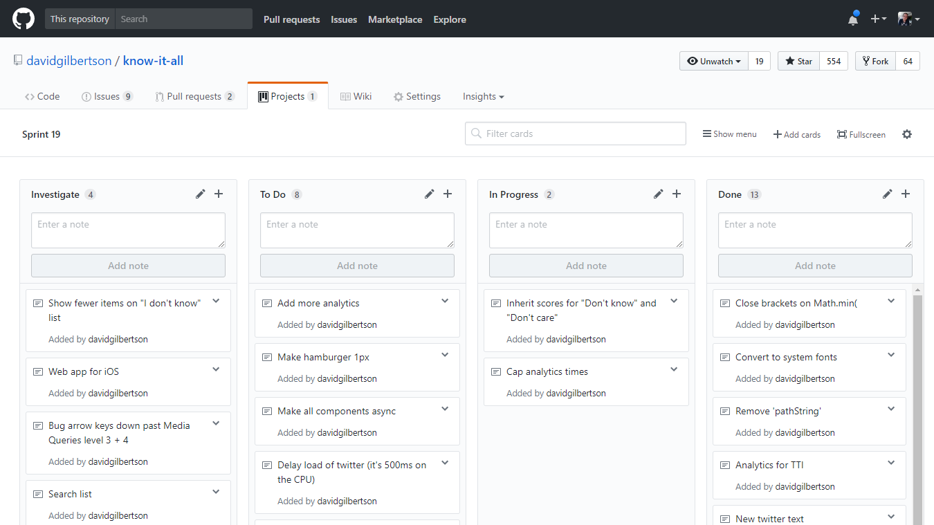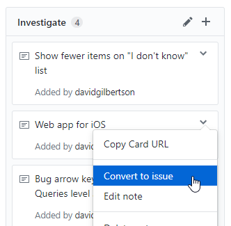 出于速度的缘故,我把上面所有的都添加为 “备注note” —— 意思是它们不是真正的 GitHub 工单。