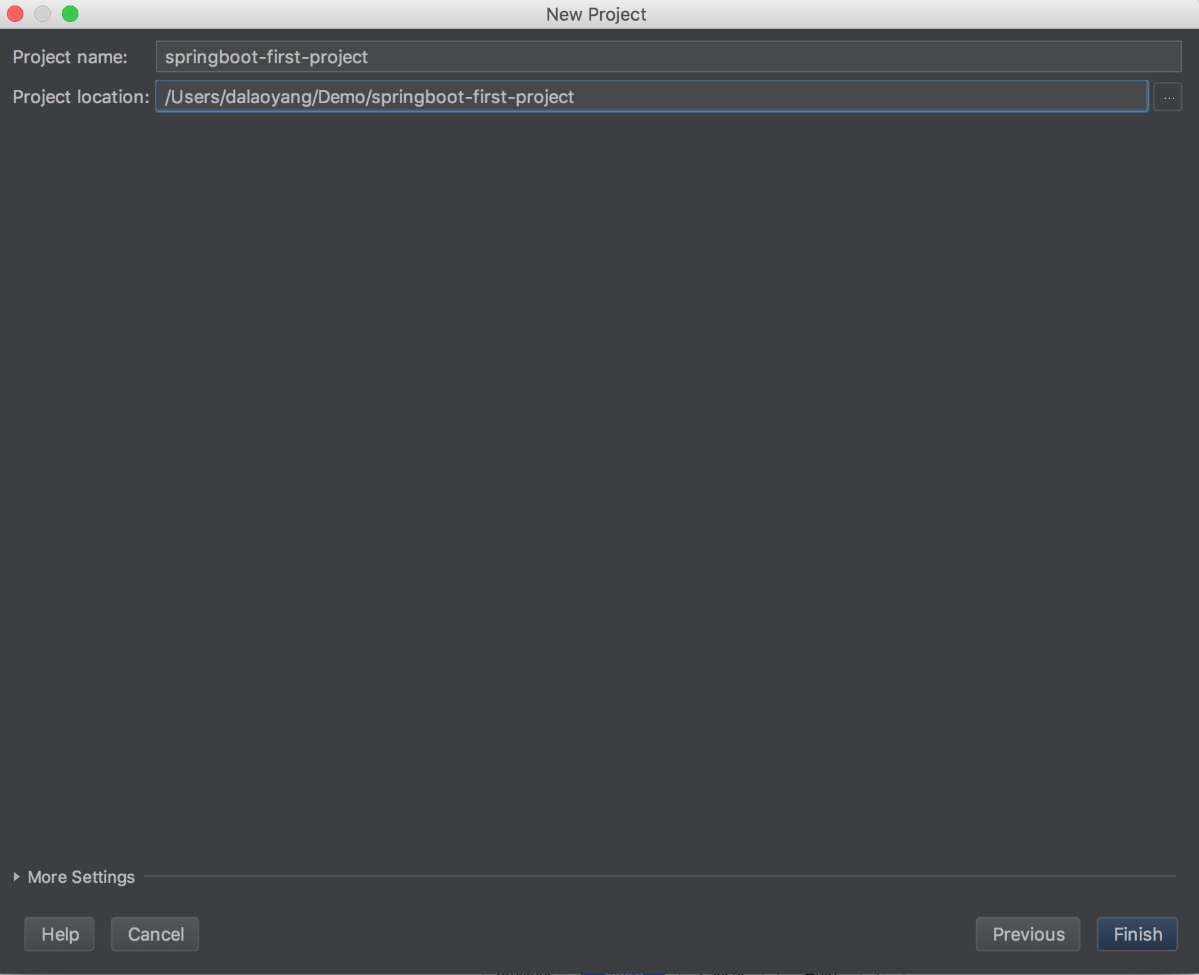 选择依赖和版本后,点击Next进入下图所示。设置项目名称,以及项目存储位置。