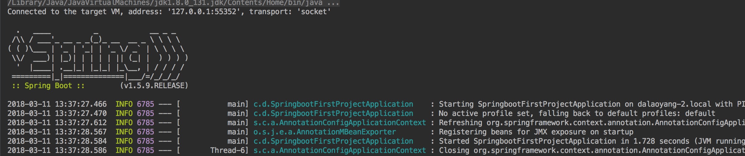 进入项目后,启动项目就可以看到SpringBoot项目启动后的标志Banner,第一个SpringBoot项目就这样搭建完成了。