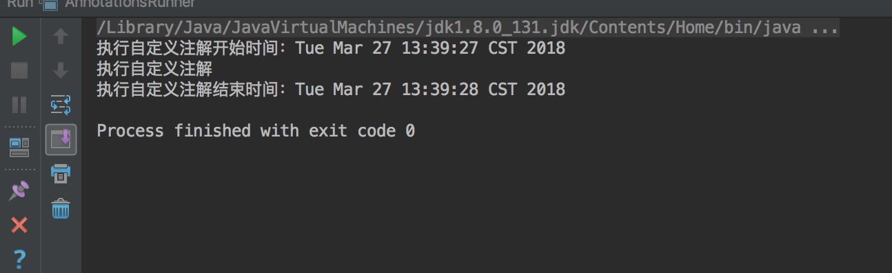 }执行AnnotationsRunner类中得main函数,可以看到控制台如下所示: