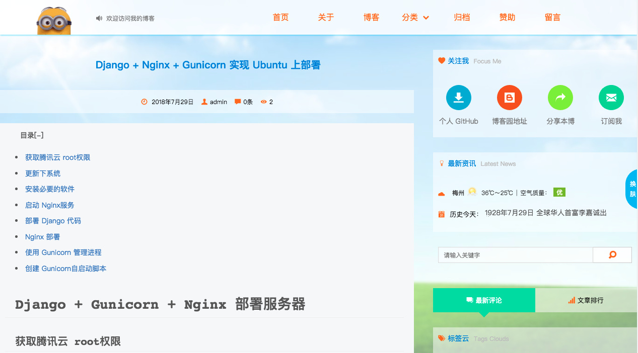 如果以后更新了代码,只需重启下 Nginx 和 Gunicorn 就行了。