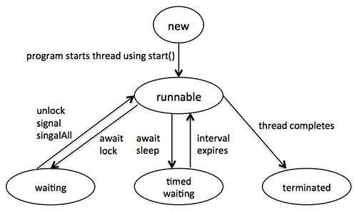 java线程在他的生命周期内有几种不同的状态:线程初始化,启动,运行和死亡。