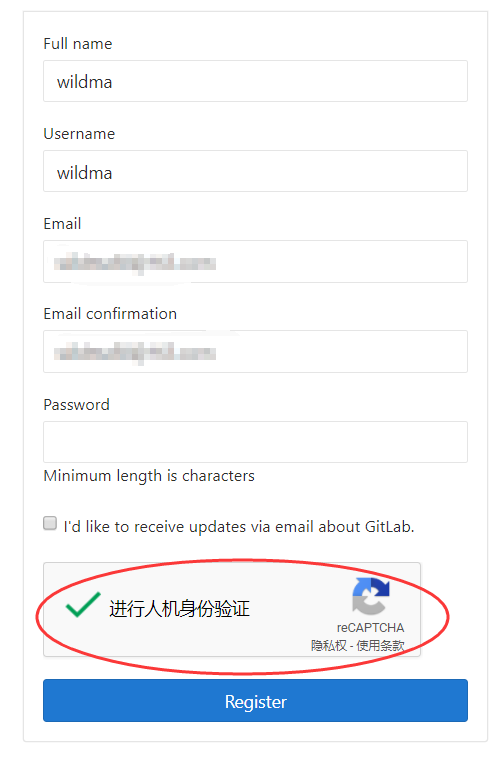 那是因为注册时需要验证码验证,就是reCAPTCHA,是一个图形验证码。但是这个验证码需要翻Q才能看得到,否则你一直都注册不了。如图: