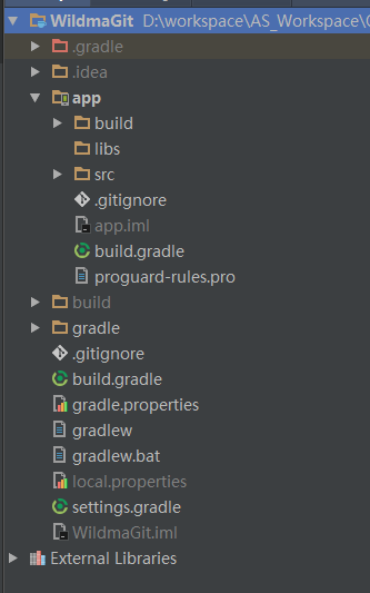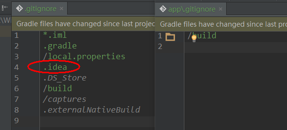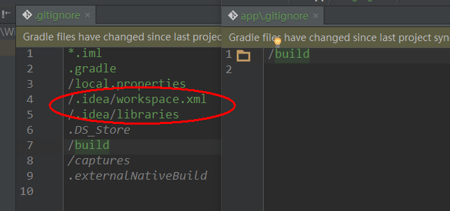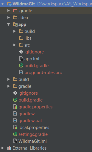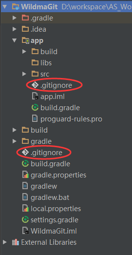 Android Studio创建项目后会自动生成.gitignore文件,这个文件可以用来忽略那些不用加入到仓库的文件。项目根目录下与module目录下都会生成该文件,如下:
