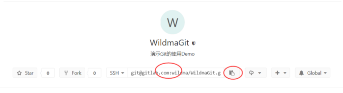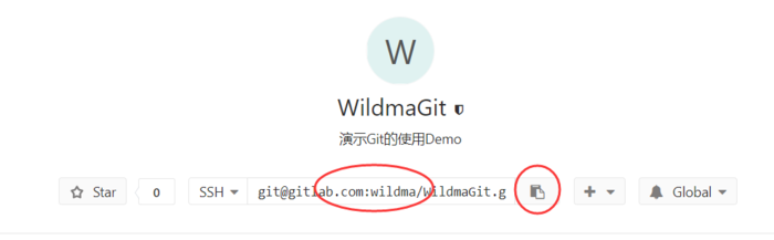 其中 [email protected]:wildma/WildmaGit.git 为我们项目的远程地址,可以到我们前面创建项目中复制,如下:
