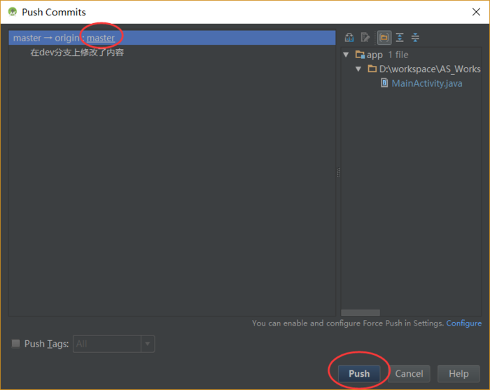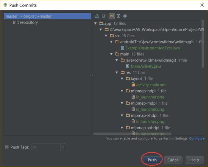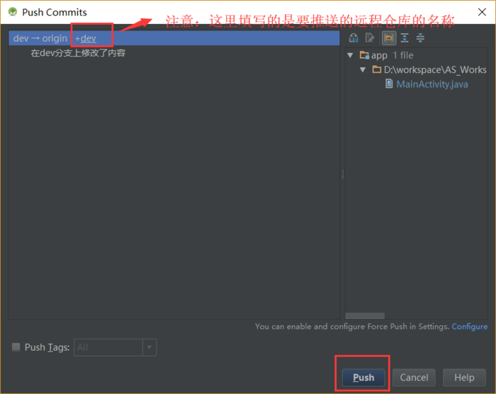 然后弹出Push框,选中Push Tags,点击Push即可推送到远程。如图: