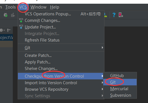 然后点击Android Studio顶部菜单栏上的VCS-->Checkout from Version Control-->Git ,如图: