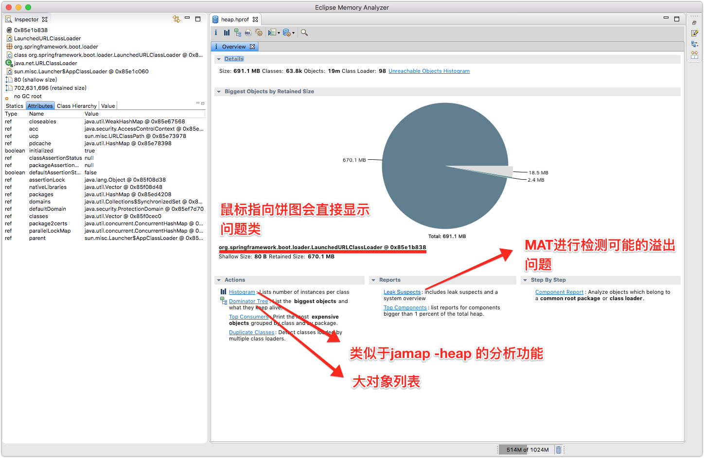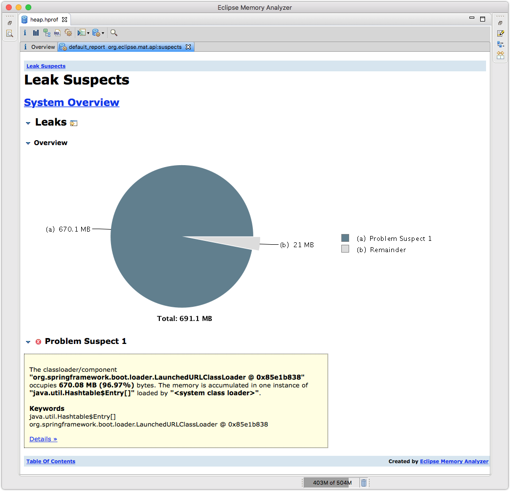 点击Leak Suspects查看分析结果。