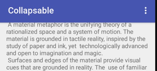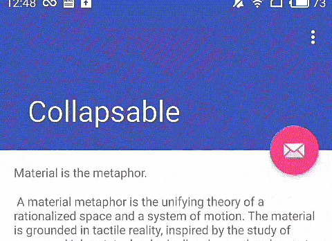 例如demo中自带的 app:layout_scrollFlags="scroll|exitUntilCollapsed" 滑上去toolbar收缩在顶部: