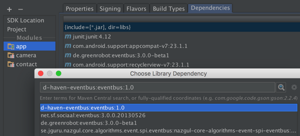 compile 'de.greenrobot:eventbus:3.0.0-beta1'