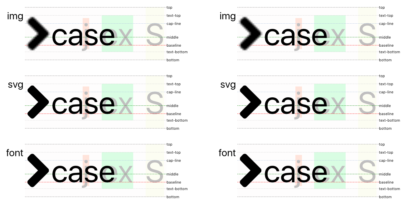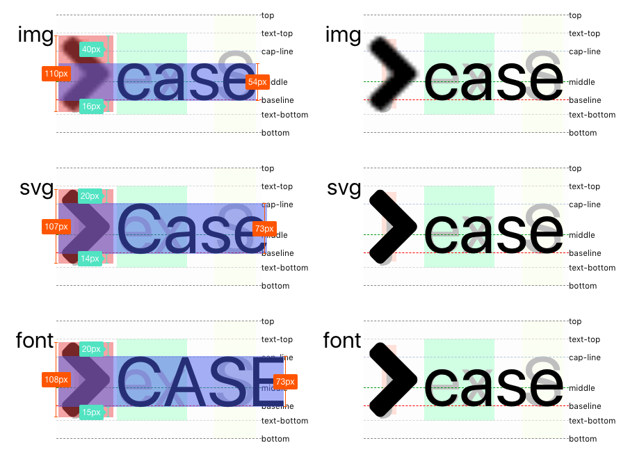 也就是说,创建一个局部的容器,生成不可见文本(零空格,模拟Strut),让不可见文本对齐Line Box中其他文本,让图标对齐这个不可见文本。
