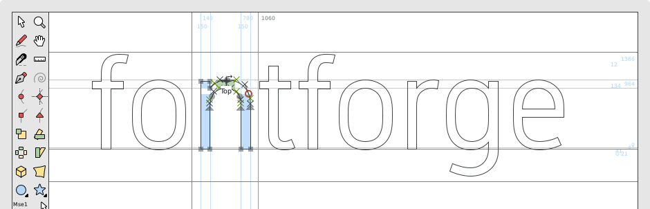 1.2 x 1.2 em最右侧是文字特征的一些横向参考线,除了