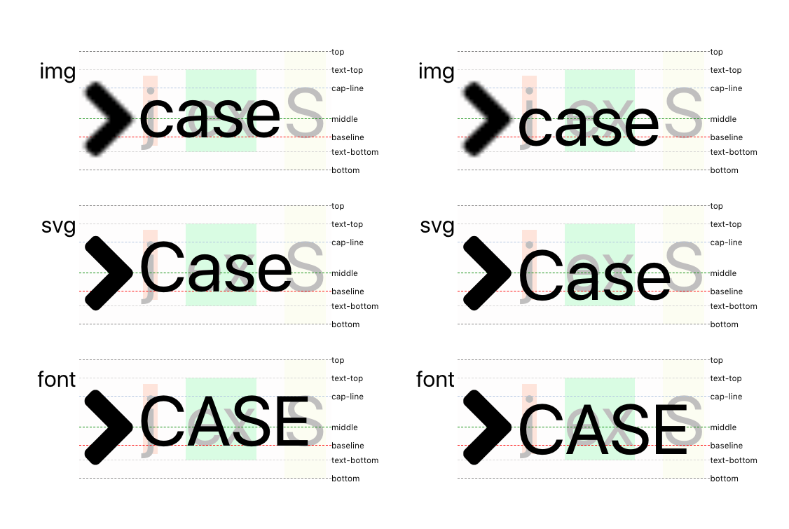Icon图标正中间正好在middle基线上,所以可以先将图片下移xHeight / 2,然后再上移capHeight / 2: