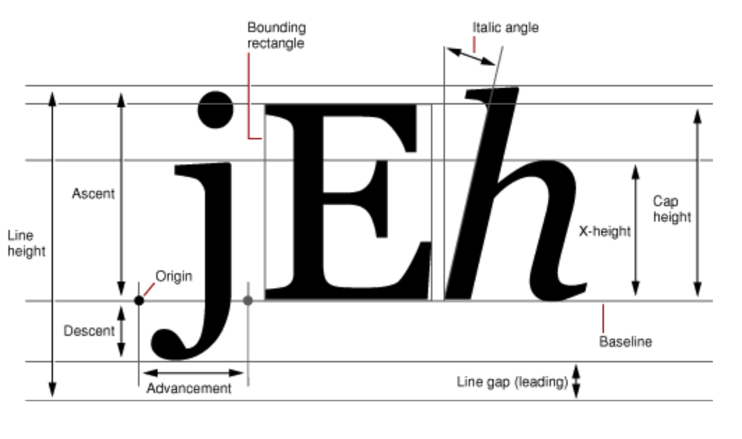 如果你对字体度量较为感兴趣,强烈建议你花一些时间这篇文章进行了解。这里用一张经典的图来展示我们更为关注的一些信息:
