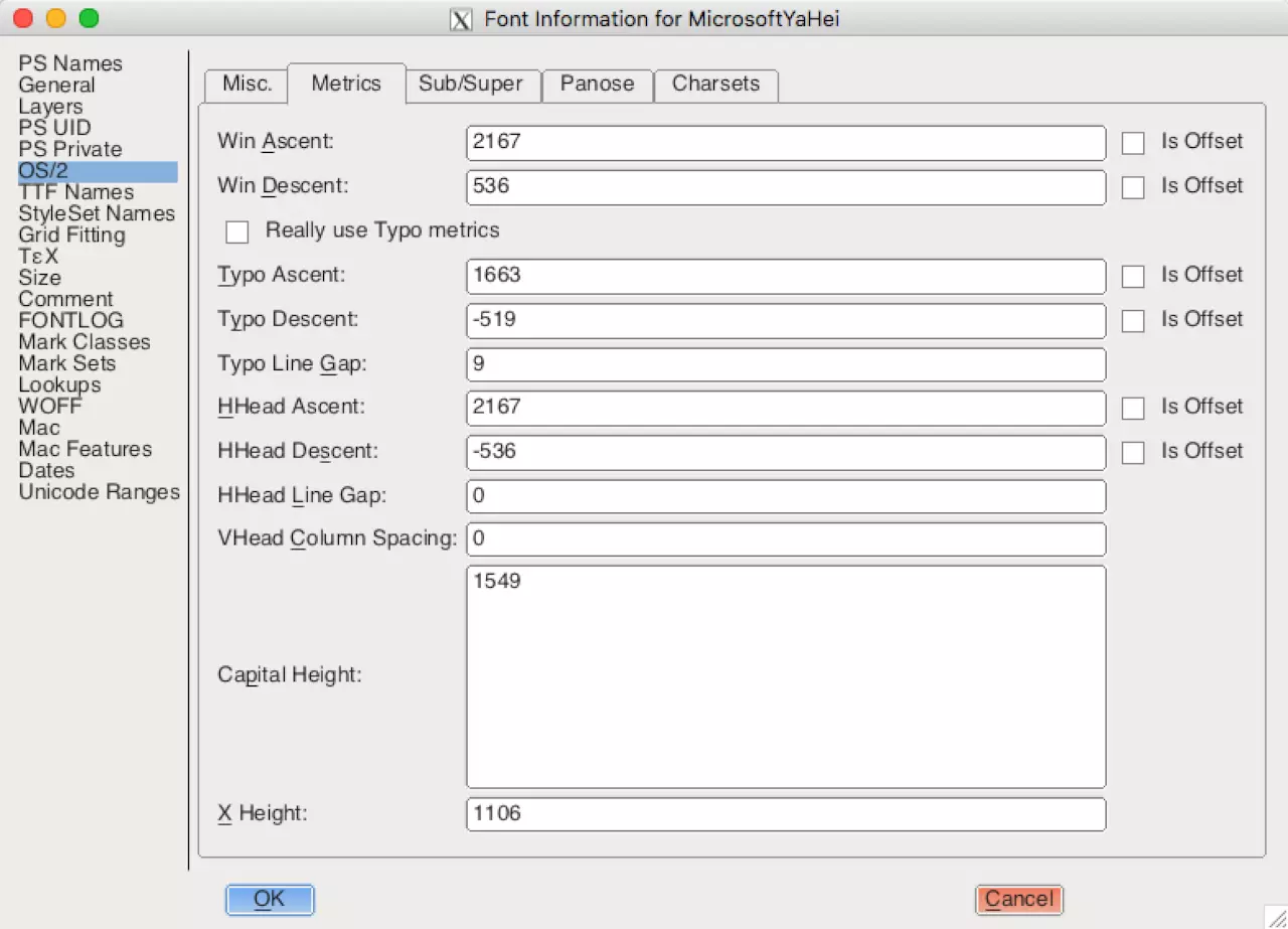 Font Metrics常常被称之为字体度量,指的就是字体中的一系列参数,这些参数对于CSS而言是不可见的,但我们可以借助类似FontForge和Opentype.js等工具来获取。
