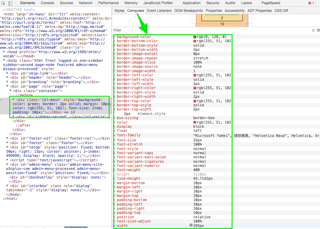 其实,如果你平时细心的话,在使用浏览器自带的开发者工具的时候,你就可以查看到浏览器对元素计算出来的属性,比如下图: