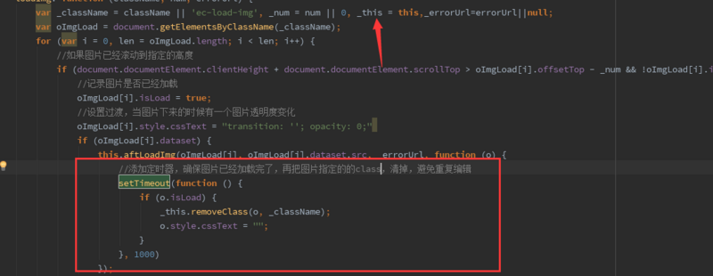 } else { this.aftLoadImg(oImgLoad[i], oImgLoad[i].getAttribute("data-src"), errorUrl, function (o) { //添加定时器,确保图片已经加载完了,再把图片指定的的class,清掉,避免重复编辑