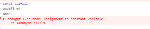 说完了let,说下const,const初始化赋值之后就不能再改变赋值。如下图。