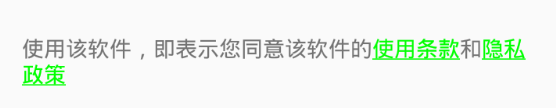 SpannableString spanStr = new SpannableString("使用该软件,即表示您同意该软件的使用条款和隐私政策");
