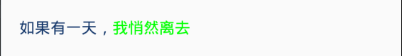 TextView textth = (TextView) findViewById(R.id.textth); String textStr1 = "<font color=\"#123569\">如果有一天,</font>"; String textStr2 = "<font color=\"#00ff00\">我悄然离去</font>"; textth.setText(Html.fromHtml(textStr1 + textStr2));