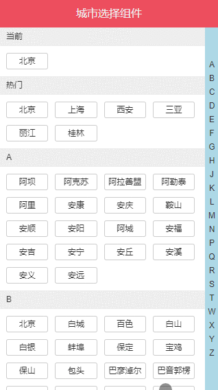 最近用vue仿写途牛旅行APP 遇到了这样的城市列表选择页面,花了些时间,用Vue实现了一下并让它体验的接近 安卓/IOS 原生组件