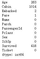 """ 导入数据 """ import pandas as pd import numpy as np data_train = pd.read_csv('train.csv') data_test = pd.read_csv('test.csv') df = data_train.append(data_test)将训练集和测试集进行合并,以便后续数据内容变换的统一处理。
