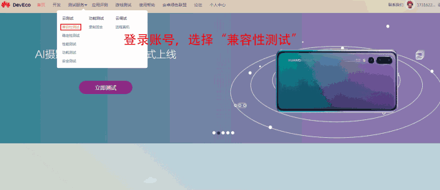 进入https://deveco.huawei.com/ ,登录账号,选择“兼容性测试”。