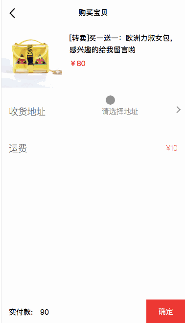 接着点击立即购买则会跳到付款页面,如果填过地址等信息的,那么可以选择,如果未填的,则会引导至输入相关信息页面,再点击购买就成功了,这个时候数据就会利用vuex保存到我的个人页面中的我买到的页面中。可以进行确认收货后删除订单。发布