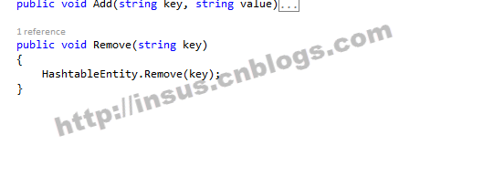 class Av { public Hashtable HashtableEntity = new Hashtable() { { "A", "Leo" }, { "B", "Insus.NET" }, { "C", "Jack" } }; public void Output() { foreach (DictionaryEntry de in HashtableEntity) { Console.WriteLine(string.Format("Key: {0}; Value: {1}", de.Key, de.Value)); } } public void ForeachKey() { foreach (string key in HashtableEntity.Keys) { Console.WriteLine(key); } } public void ForeachValue() { foreach (string value in HashtableEntity.Values) { Console.WriteLine(value); } } public void Add(string key, string value) { HashtableEntity.Add(key, value); } public void Remove(string key) { HashtableEntity.Remove(key); } public bool isExitByKey(string key) { return HashtableEntity.ContainsKey(key); } public bool isExistByValue(string value) { return HashtableEntity.ContainsValue(value); } }Source Code