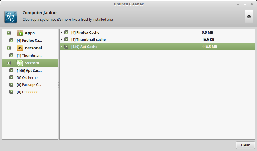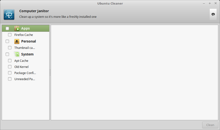 我猜所有那些怀念 Ubuntu Tweak 的人都会因为有 Ubuntu Cleaner 而感到高兴,因为它是从 janitor 模块衍生出来的。