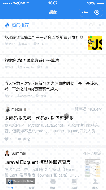 [x] HOME、搜索、沸点、小册 TAB 涉及到的上拉、下拉刷新