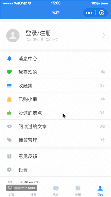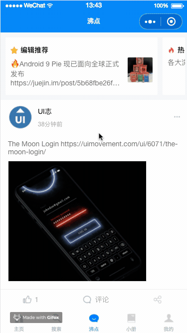 评论、留言、关注、添加到收藏集、喜欢、发表沸点等暂时均没有实现,因为 APP 里面的东西实在是不少......